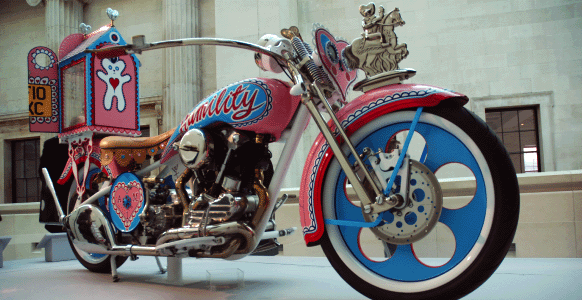 Perry’s artistic contributions harmonize and enrich the show. I love his cast iron figures ‘Our Mother’ and ‘Our Father’, looking like refugees from some undetermined worldly period, burdened with the weight of different cultures and conflicts. At the entrance is the AM1 – a motorcycle used to complete a recent European pilgrimage. Painted in bright confectionary tones, it has a folksy whimsy which is instantly appealing. The bike is decorated with illustrative graphics of his childhood teddy, Alan Measles – which, looking at the Alan Measles merchandise being consumed in the exhibition shop – is now so reproduced and recognisable that it has effectively, become a commercial brand. Far from selling out, I’m sure Perry is happy with this and would encourage visitors – as pilgrims – to take away an emblematic keepsake. A great exhibition of Perry’s work and a great window onto the museum’s collections.